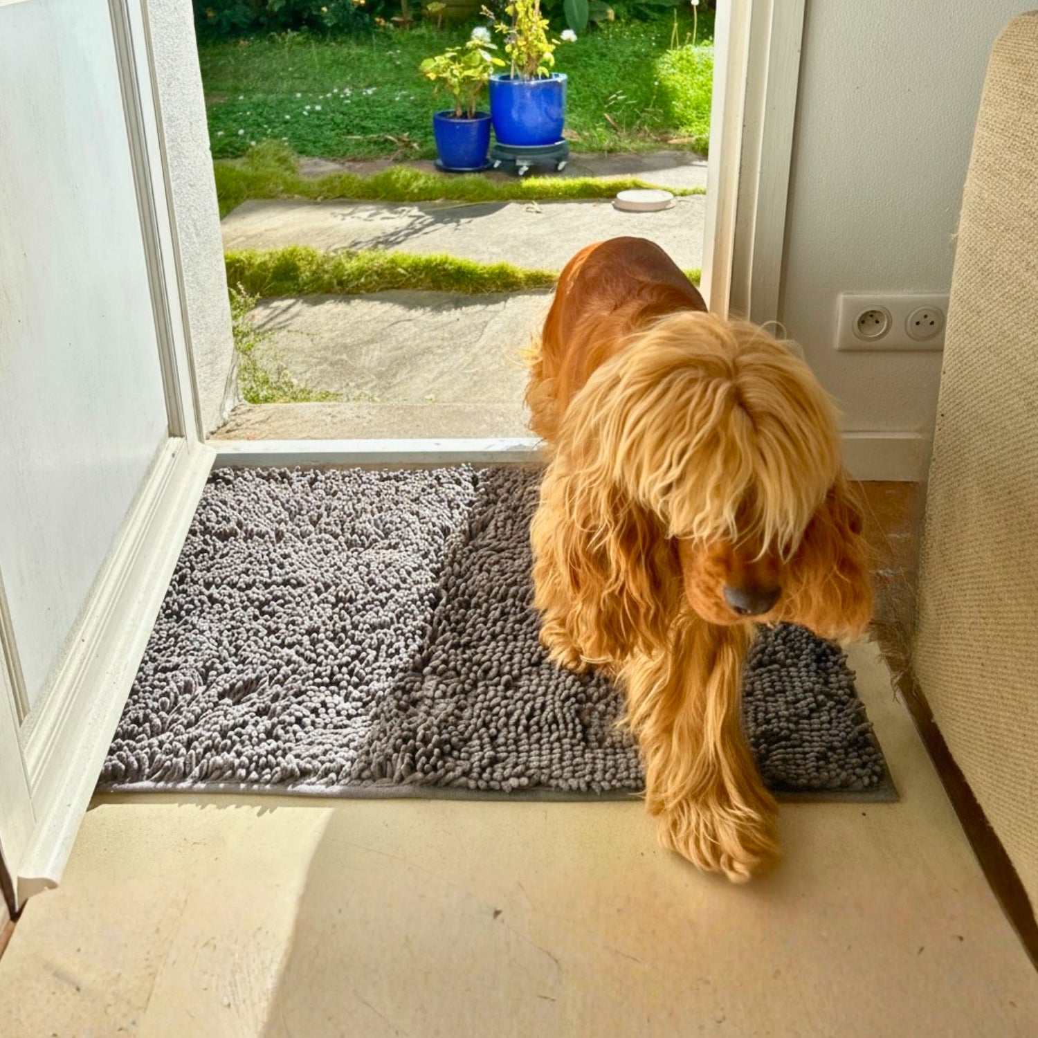 Notre tapis ultra-absorbant capture toute l'humidité et la boue dès l'entrée. Votre maison reste impeccable, votre chien reste heureux.